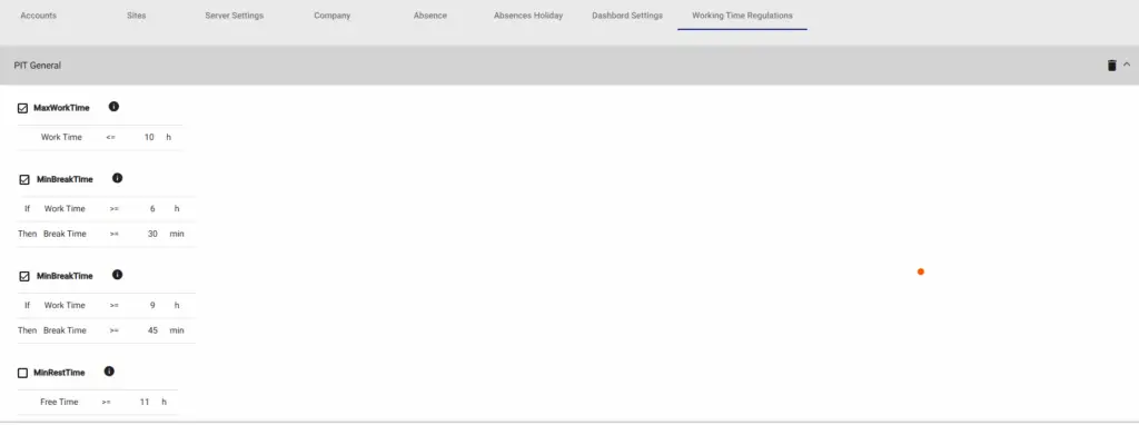 Über unsere Working Time Regulations lassen sich weiche und harte Arbeitszeitregeln definieren: